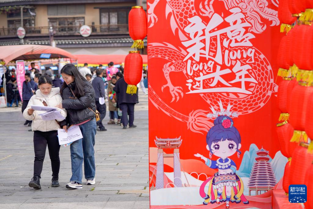2月19日,求职者在贵州省黔东南苗族侗族自治州丹寨县万达小镇“春风行动”暨东西部劳务协作招聘会上了解岗位信息。