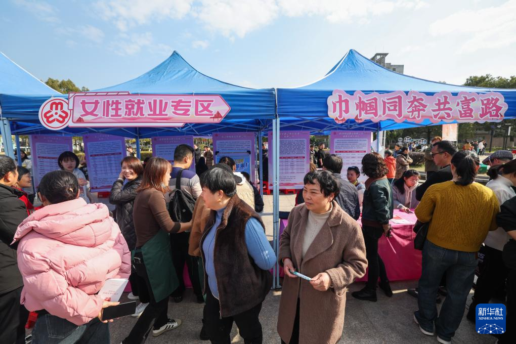 2月19日,在浙江省建德市“新春纳才 遇建未来”2024年新春首场综合性招聘会现场,求职者在女性就业专区寻找合适的岗位。