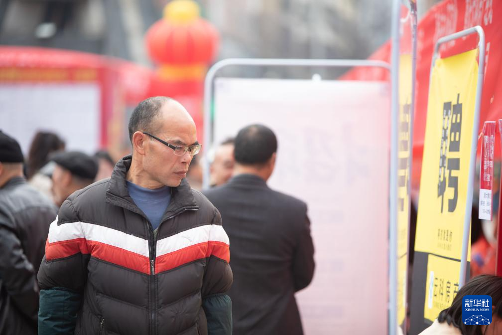 2月19日,在重庆市秀山土家族苗族自治县花灯广场,求职者在招聘会现场了解招工信息。