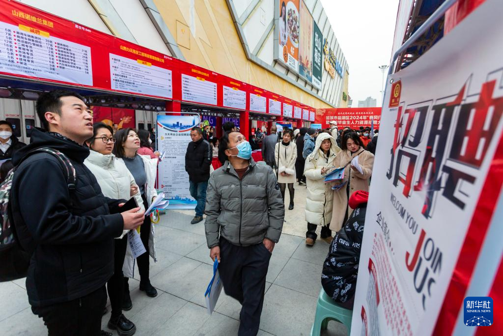 2月19日,求职者在陕西省渭南市2024年春风行动暨劳务协作现场招聘会了解企业招聘情况。