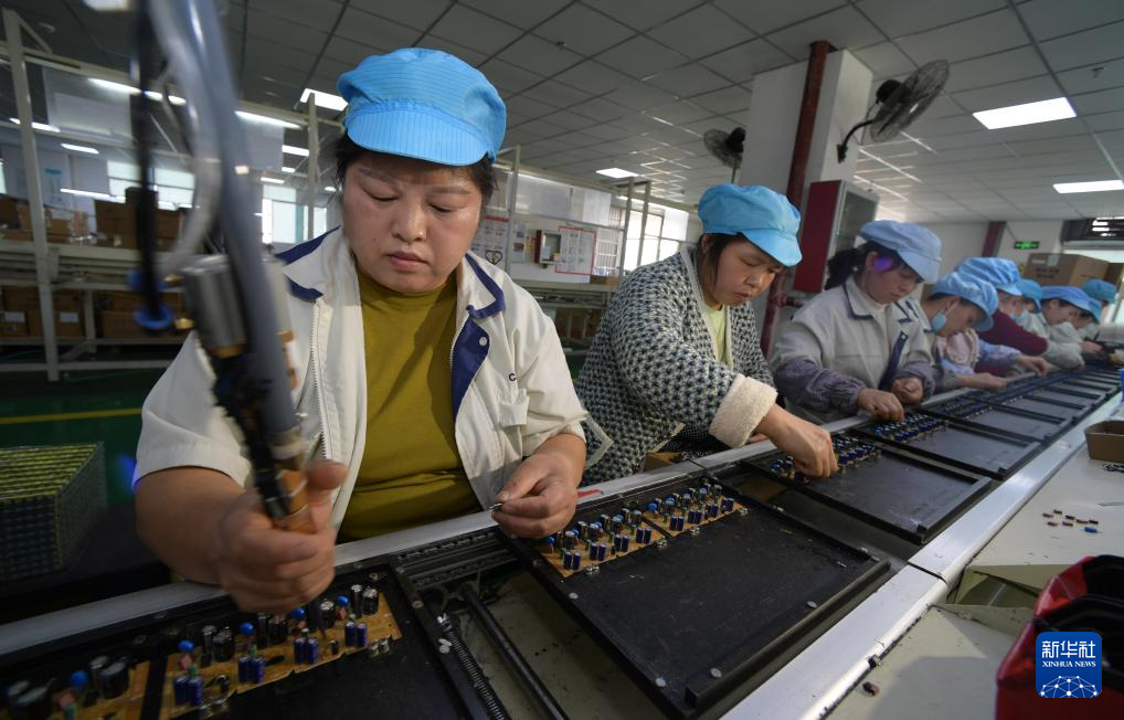 2月20日,工人在贵州省黔东南苗族侗族自治州丹寨县金钟经济开发区一家生产电子产品的企业进行焊锡作业。