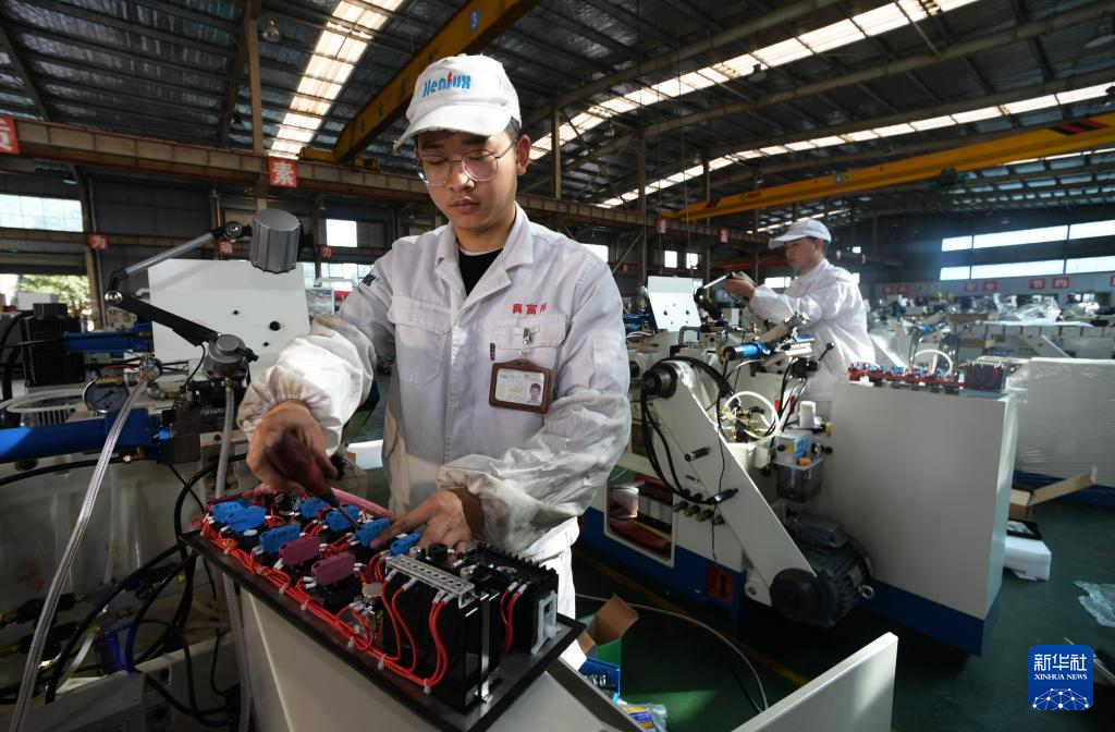 2月20日,工人在贵州省黔东南苗族侗族自治州丹寨县金钟经济开发区一家生产机床的企业调试电器。