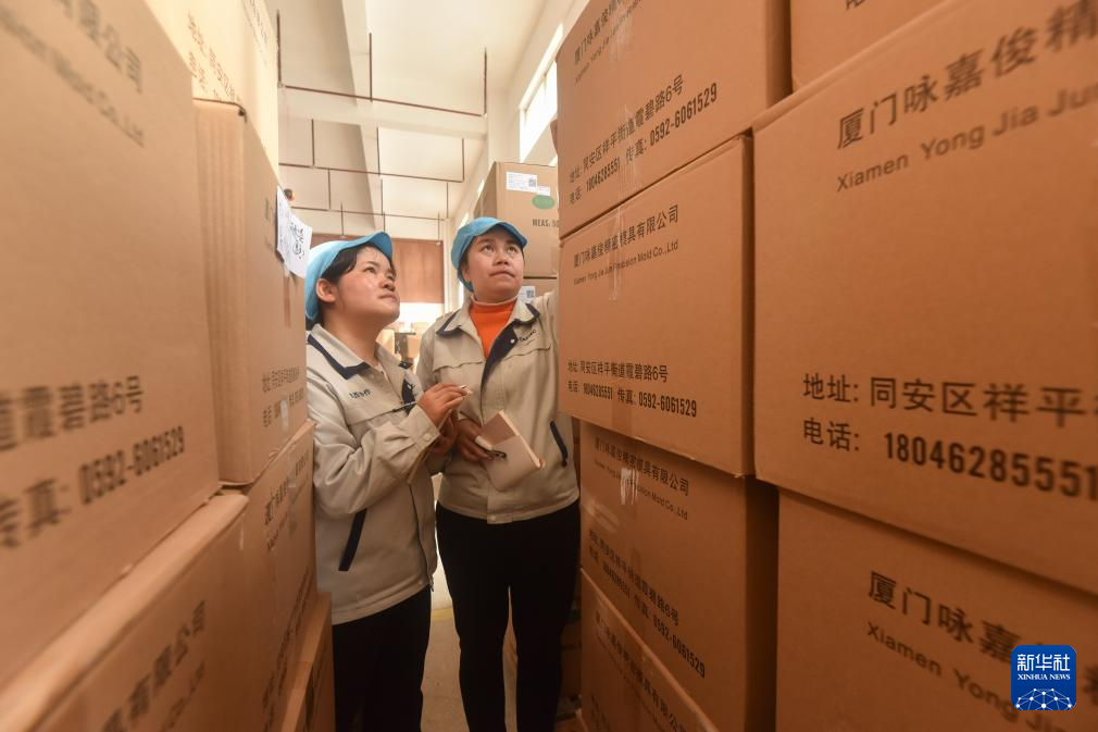 2月20日,工人在贵州省黔东南苗族侗族自治州丹寨县金钟经济开发区一家生产电子产品的企业清点产品。