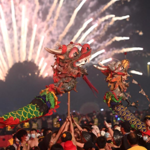 2月20日晚,广西南宁市宾阳县举行2024年炮龙节百龙舞宾州活动,超过100条炮龙在震耳欲聋的鞭炮声、锣鼓声和欢呼声中起舞。