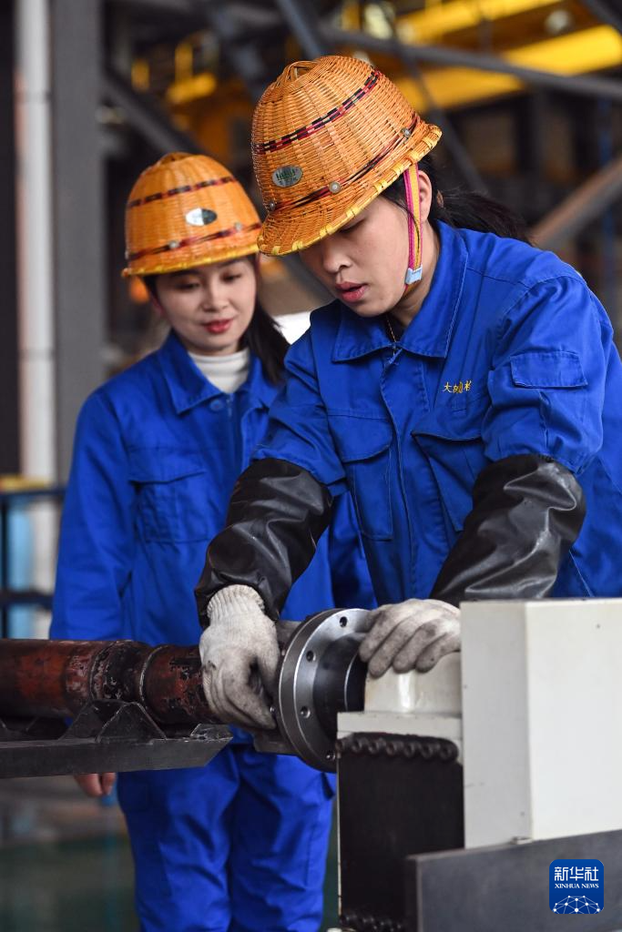 柳州工务机械段女工在拆卸大机传动轴进行维修(2月24日摄)。