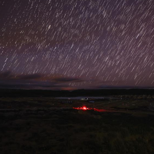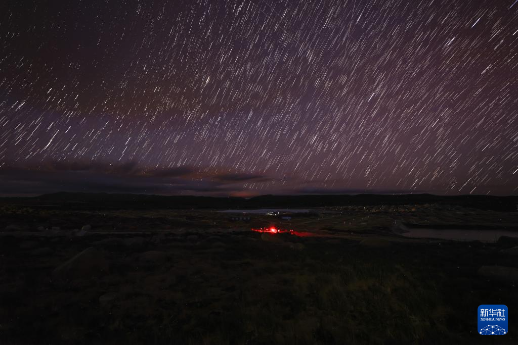 这是2023年4月21日晚拍摄的星空下的高海拔宇宙线观测站“拉索”(LHAASO)(合成照片)。