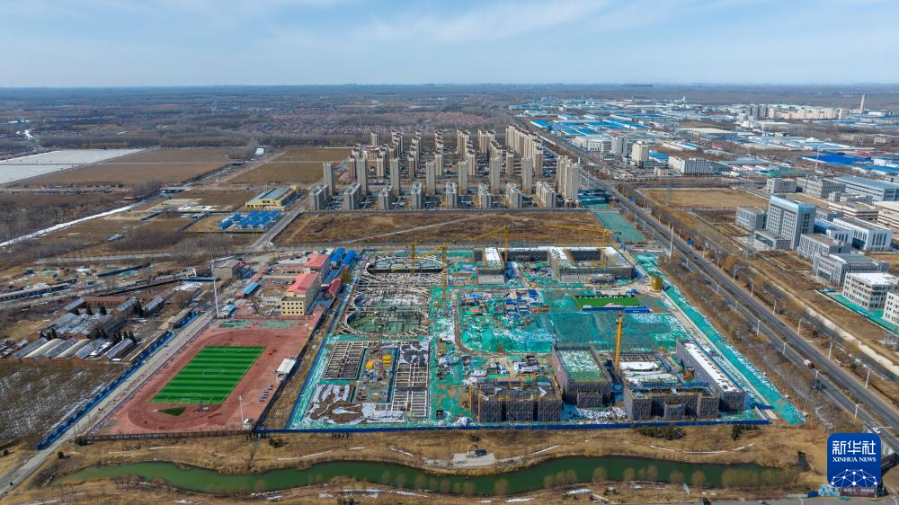 这是京津中关村科技城内正在建设的一所中学(2月22日摄,无人机照片)。