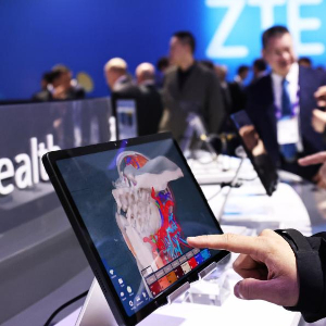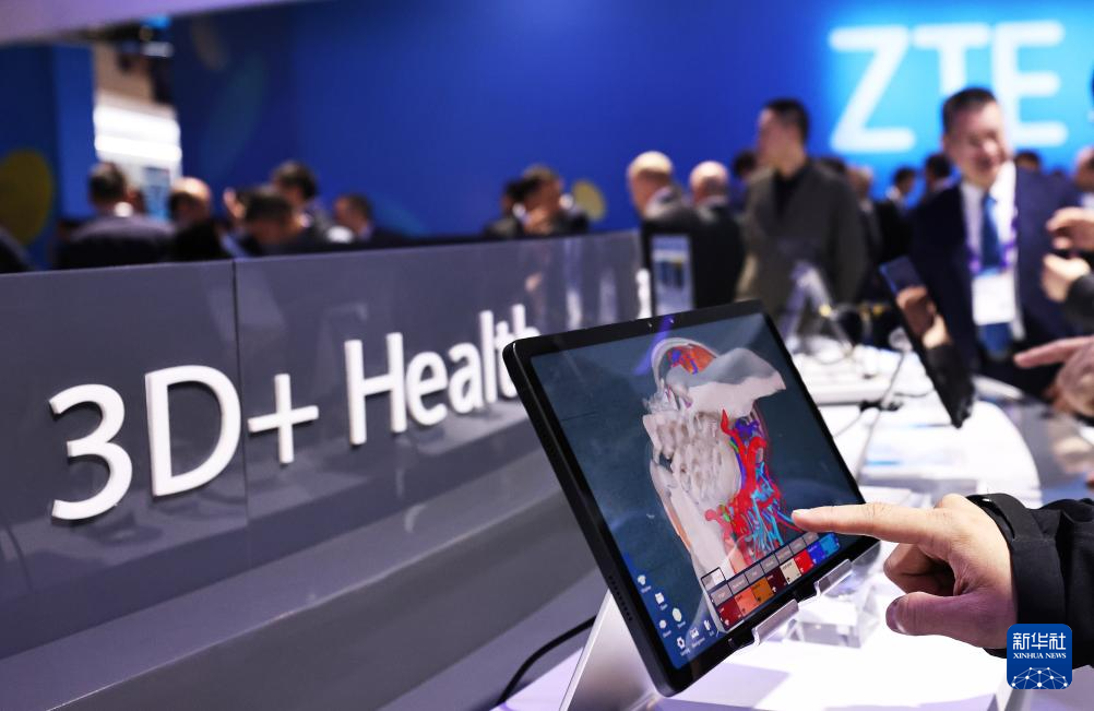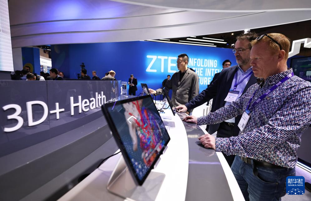 2月28日,在西班牙巴塞罗那举行的2024年世界移动通信大会上,一名参观者在中兴展台体验全新升级的努比亚5G+人工智能裸眼3D平板电脑。