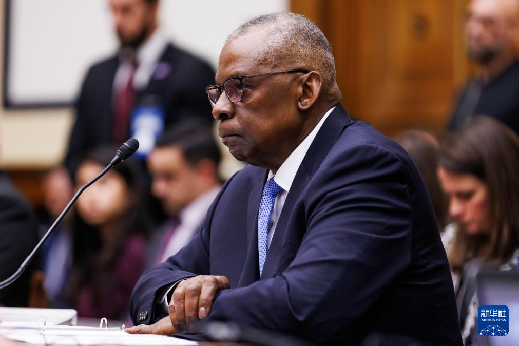 2月29日,在美国华盛顿,国防部长奥斯汀出席国会众议院军事委员会听证会,就延迟报告住院一事作证。