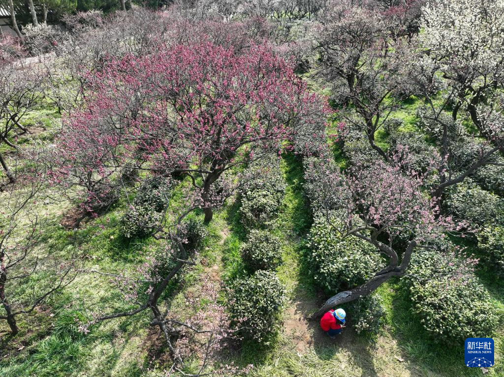 3月3日,游人在南京梅花山游玩(无人机照片)。