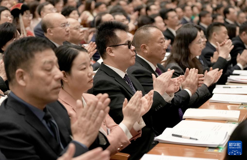 3月5日,王永澄代表(中)在十四届全国人大二次会议开幕会上鼓掌。
