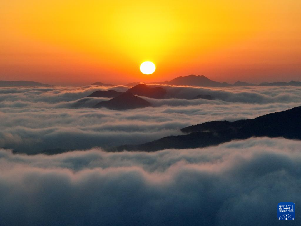 3月3日拍摄的福建戴云山脉云海日出景观(无人机照片)。