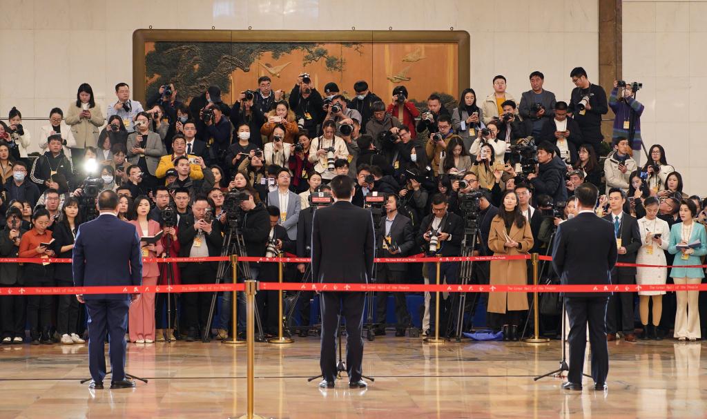 3月4日,全国政协十四届二次会议首场“委员通道”集体采访活动在北京人民大会堂举行。