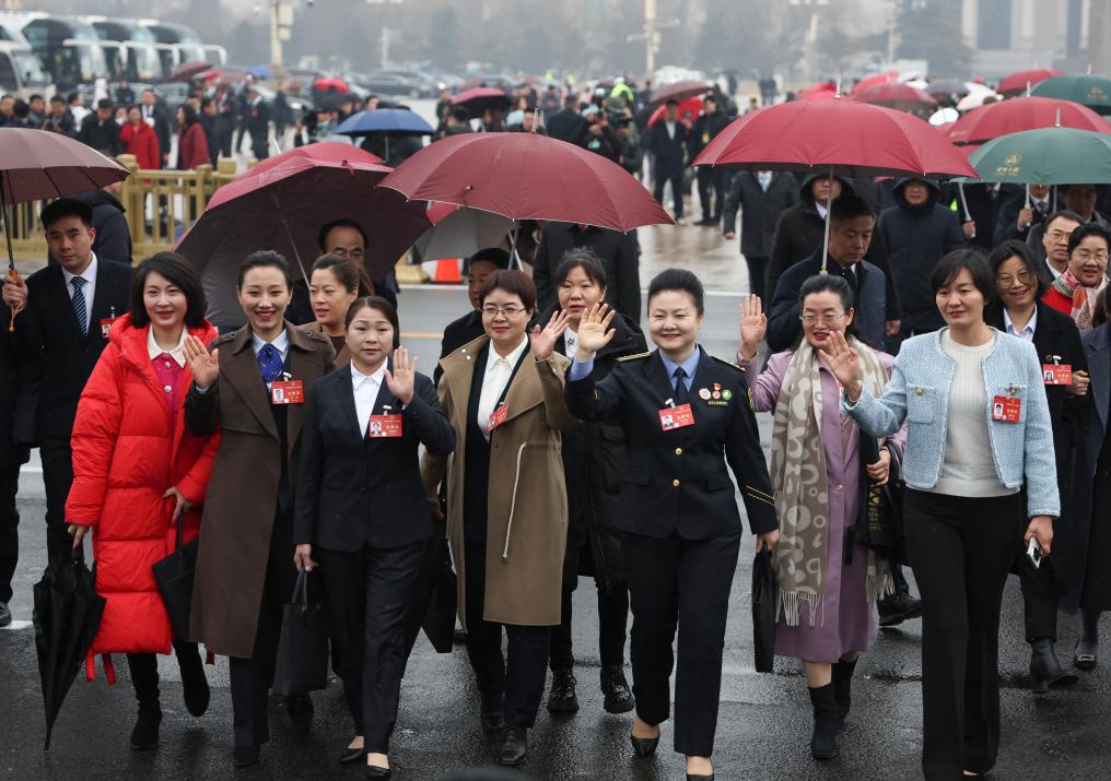 3月5日,第十四届全国人民代表大会第二次会议在北京人民大会堂开幕。这是全国人大代表走向会场。