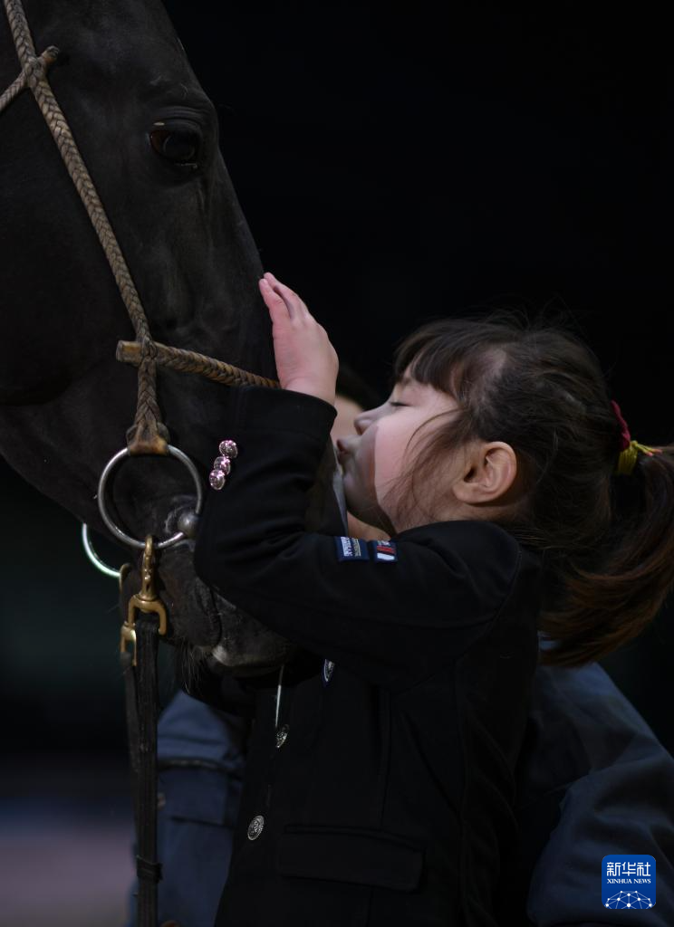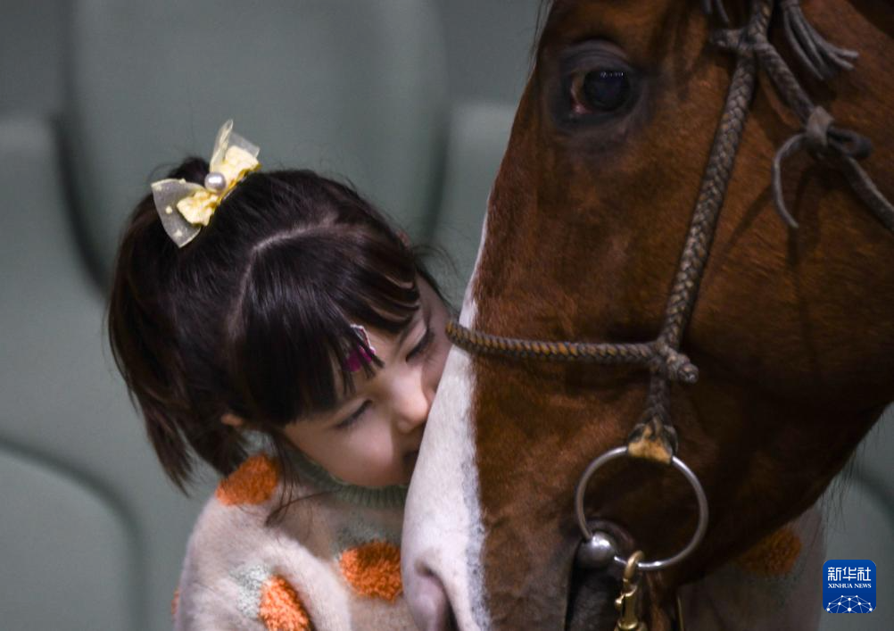 3月7日,在汗血马基地,夏克拉在亲吻一匹汗血马。