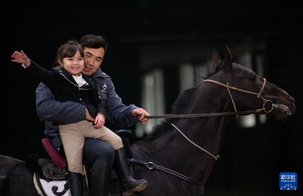 3月7日,在汗血马基地,希尔扎提抱着夏克拉一起骑马。