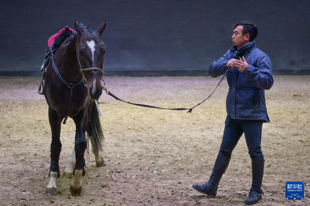 3月7日,在汗血马基地,希尔扎提在驯马。