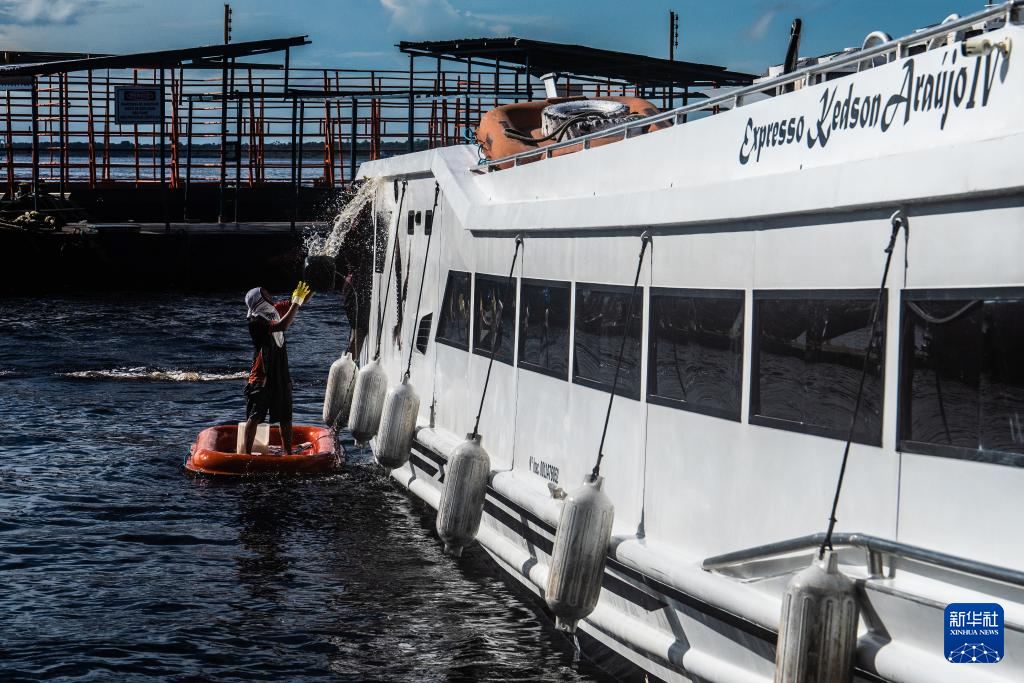 3月14日,水手在巴西亚马孙州首府马瑙斯一座码头清洗游船。