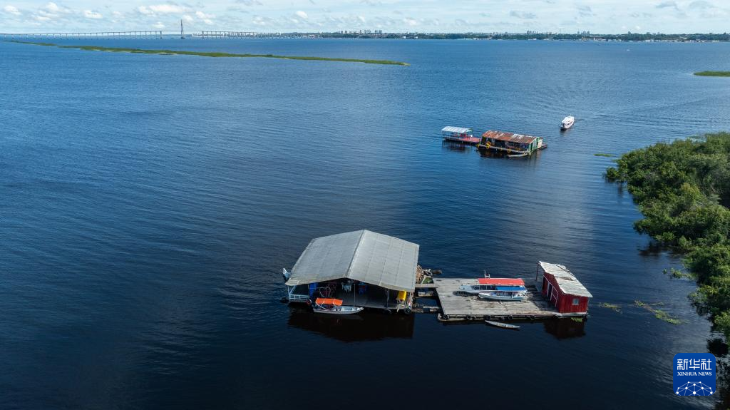 这是3月14日在巴西亚马孙州首府马瑙斯附近拍摄的水上房屋(无人机照片)。