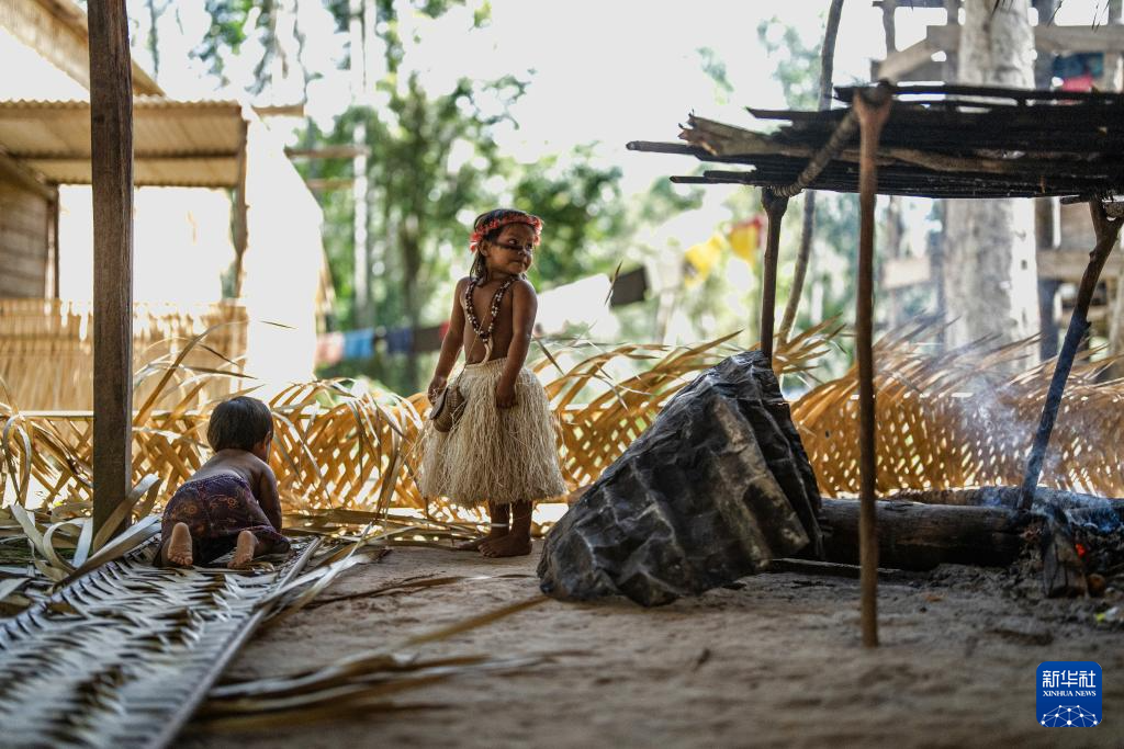 3月14日,孩子在巴西亚马孙州首府马瑙斯附近一处原住民聚居点玩耍。