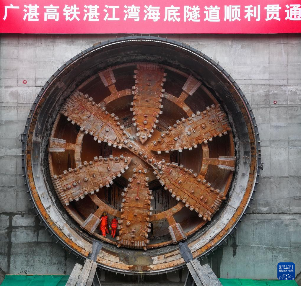 当日,由中铁十四局施工的广州至湛江高速铁路湛江湾海底隧道顺利贯通。该隧道由一台直径14.33米的盾构机掘进,历时33个月,掘进7551米,是目前国内独头掘进距离最长的穿海高铁盾构隧道。