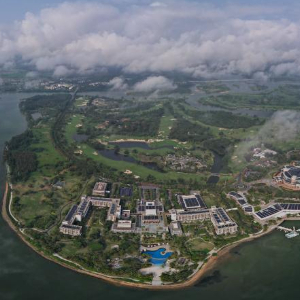 在博鳌近零碳示范区拍摄的博鳌亚洲论坛会议中心及酒店改造项目(3月9日摄,无人机照片)。
