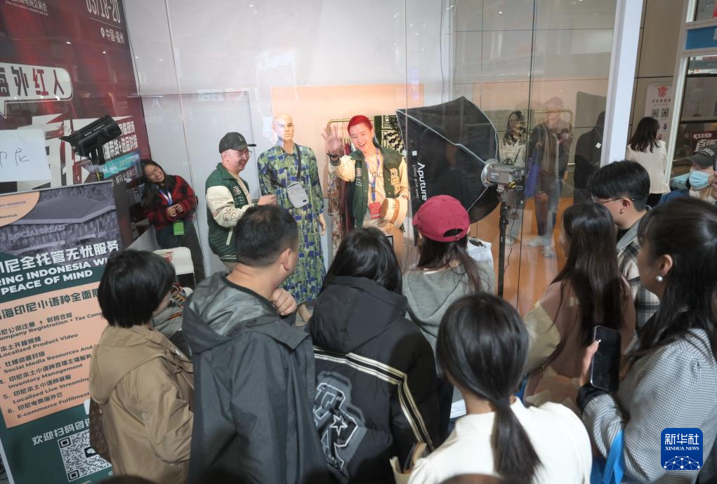 3月18日,参观者在海外红人直播专区观看印尼网红直播带货。