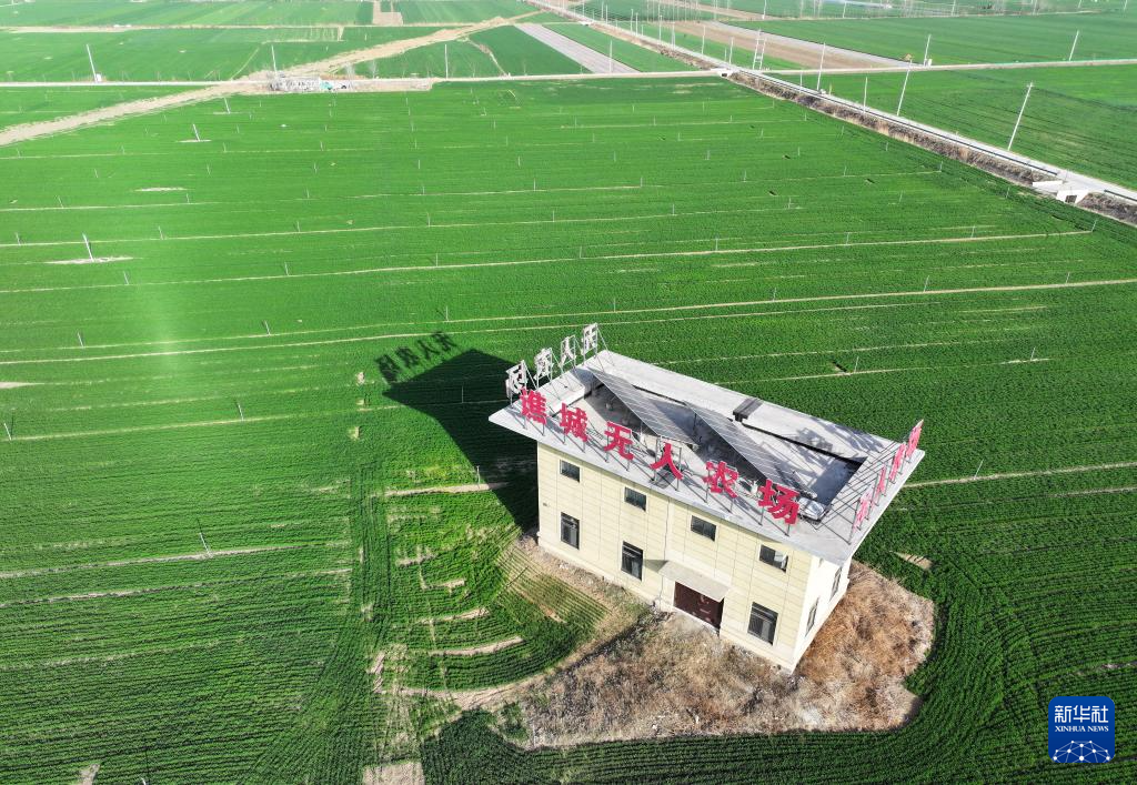 这是3月19日拍摄的位于安徽省亳州市谯城区赵桥乡双楼村的无人农场(无人机照片)。