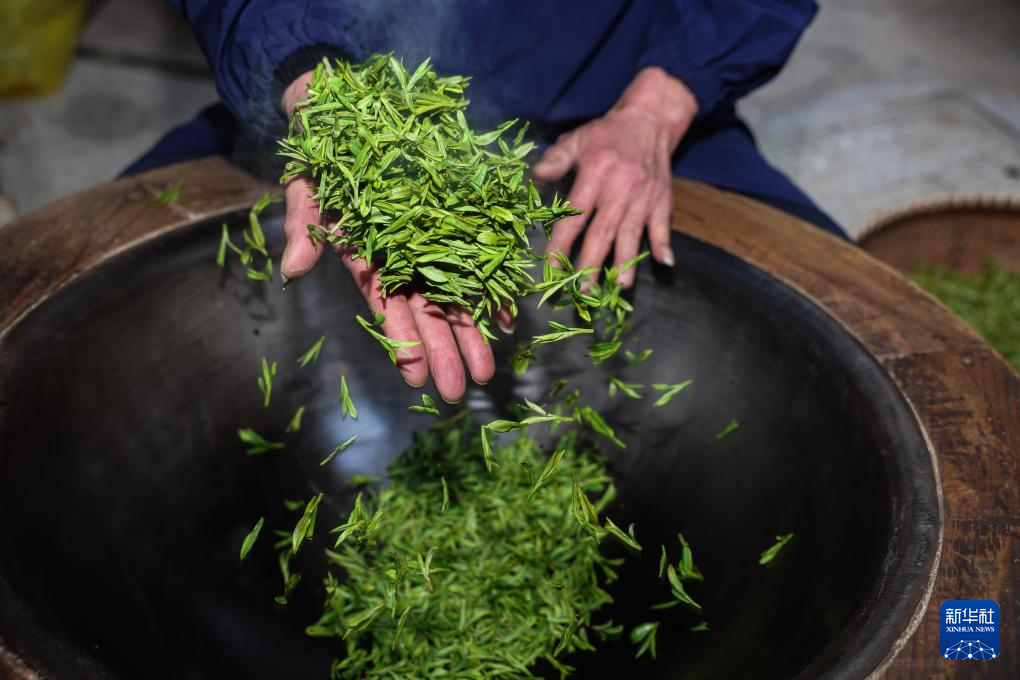 3月20日,梅家坞村的茶农在手工炒制首批西湖龙井“明前茶”。