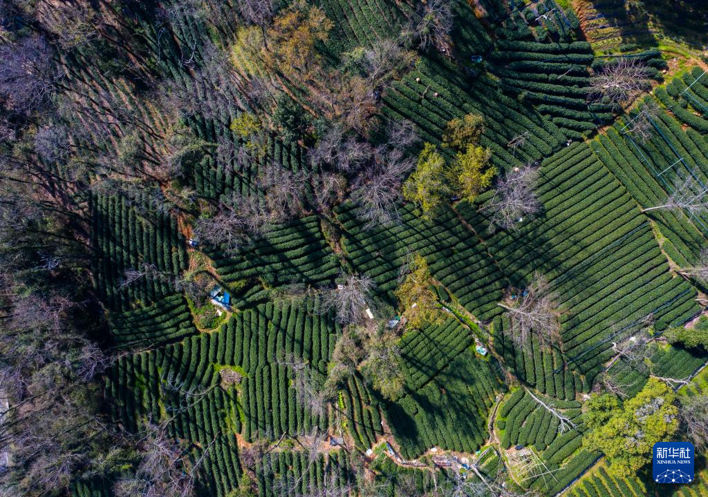 这是3月20日拍摄的梅家坞村的西湖龙井茶园(无人机照片)。