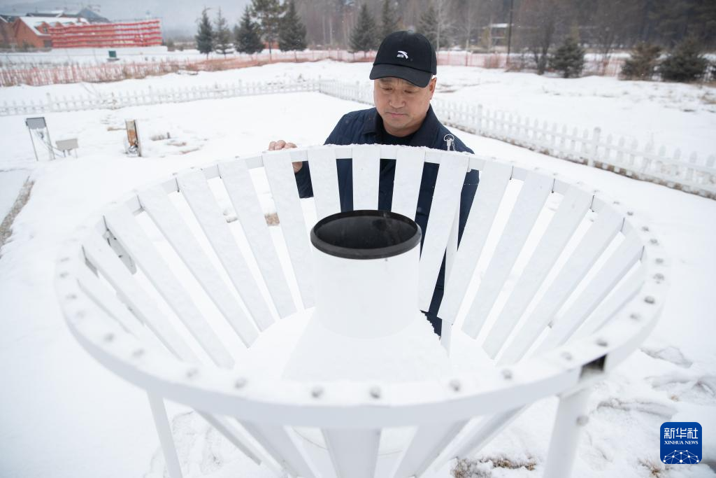 3月22日,在北极村国家基本气象站内,郭大勇巡检蒸发设备。