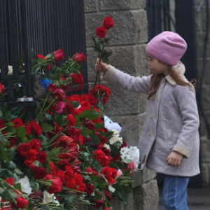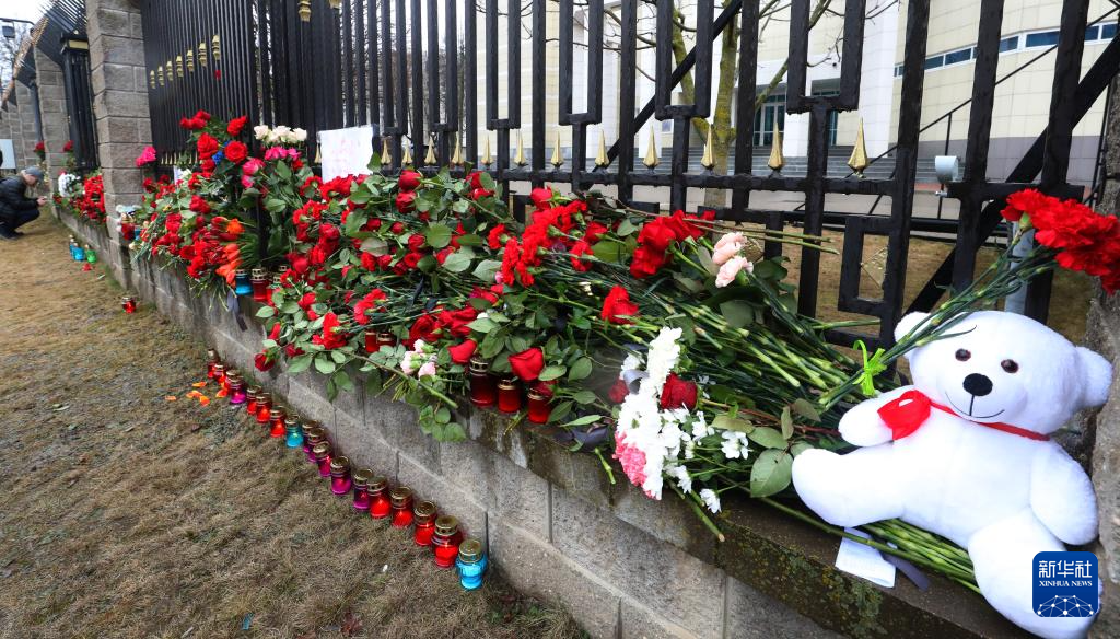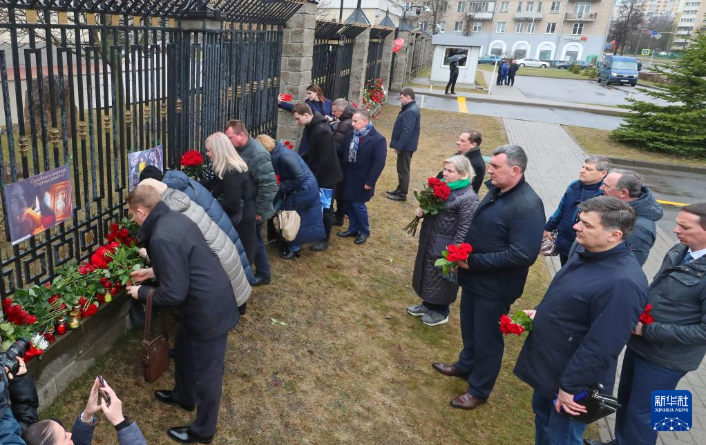 3月23日,人们在白俄罗斯明斯克的俄罗斯驻白俄罗斯大使馆前献花。