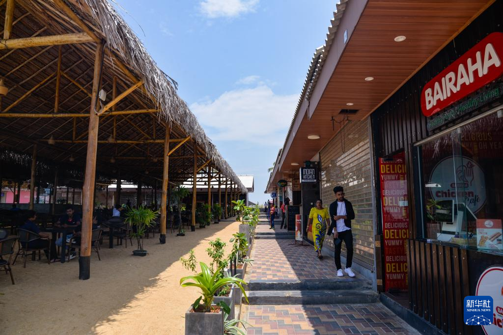这是3月27日拍摄的斯里兰卡科伦坡港口城的沙滩美食广场。