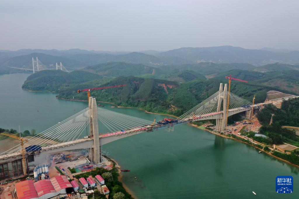 当日,南深高铁南玉段六律邕江特大桥主桥顺利合龙。至此,南深高铁南玉段全线桥隧工程顺利贯通,为项目建成通车奠定基础。