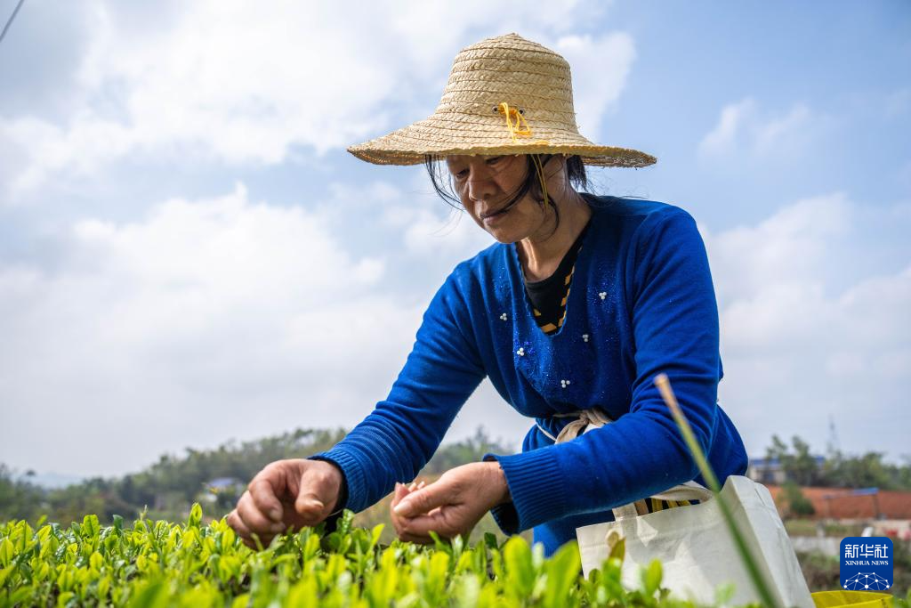 3月31日,茶农在长沙望城乌山贡茶基地采摘春茶。
