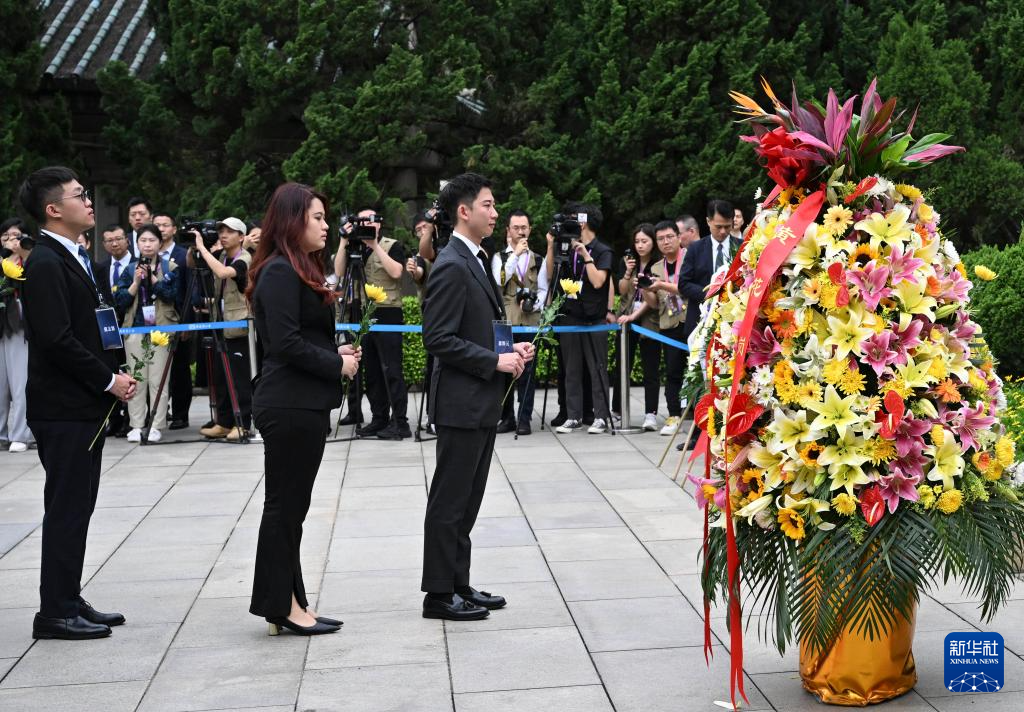 当日,马英九率台湾青年一行在广州瞻仰黄花岗七十二烈士墓园。