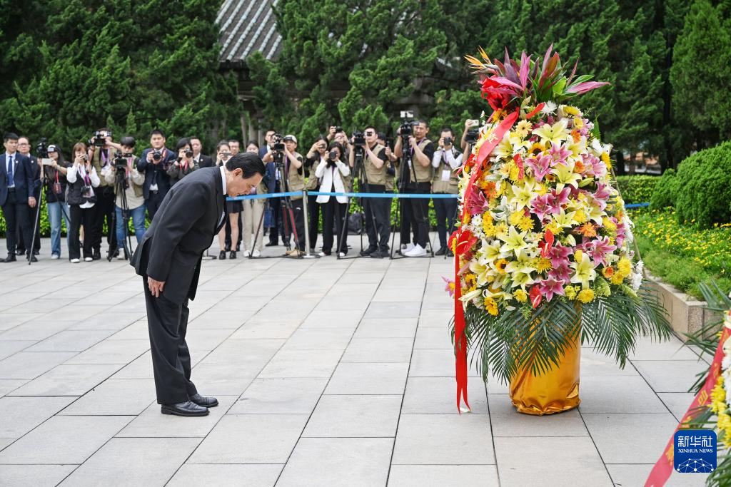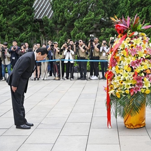 4月3日,马英九向黄花岗七十二烈士墓敬献花篮后鞠躬。