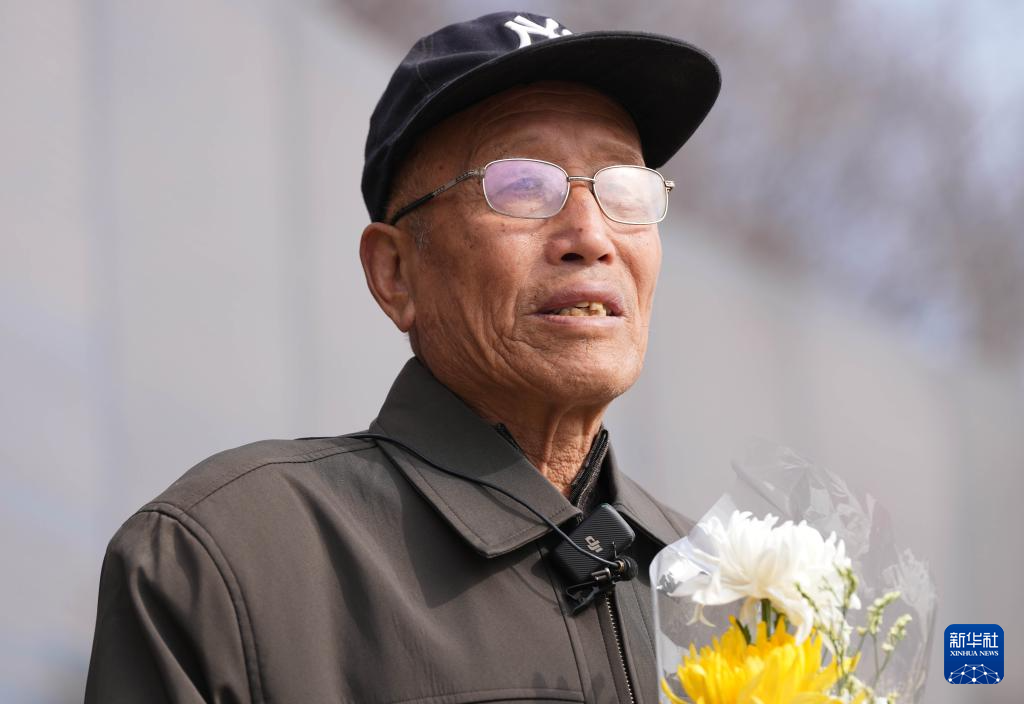 4月3日,在沈阳抗美援朝烈士陵园,史荣升老人落泪。