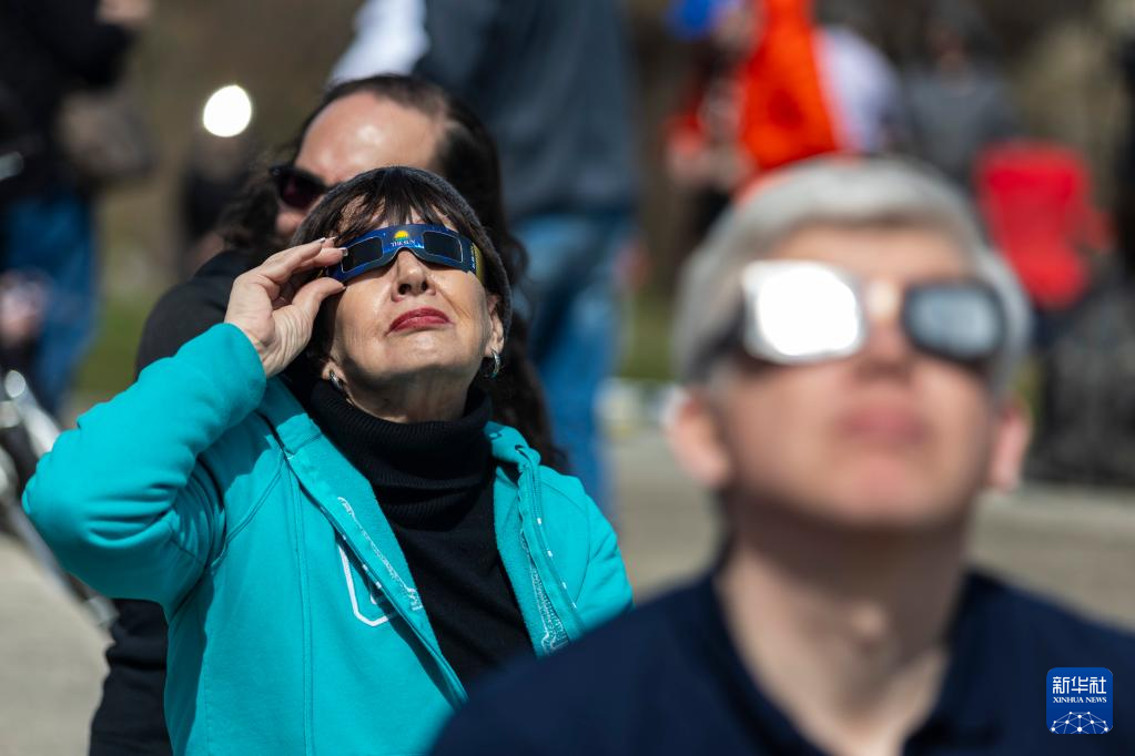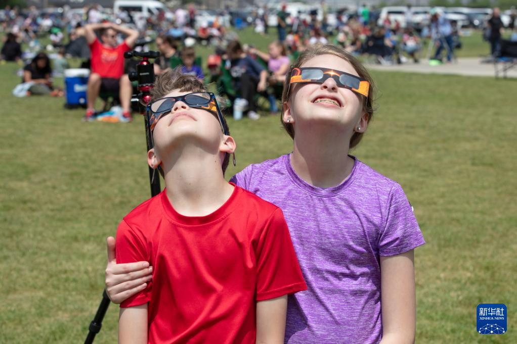 4月8日,人们在美国得克萨斯州达拉斯北郊观看日食。