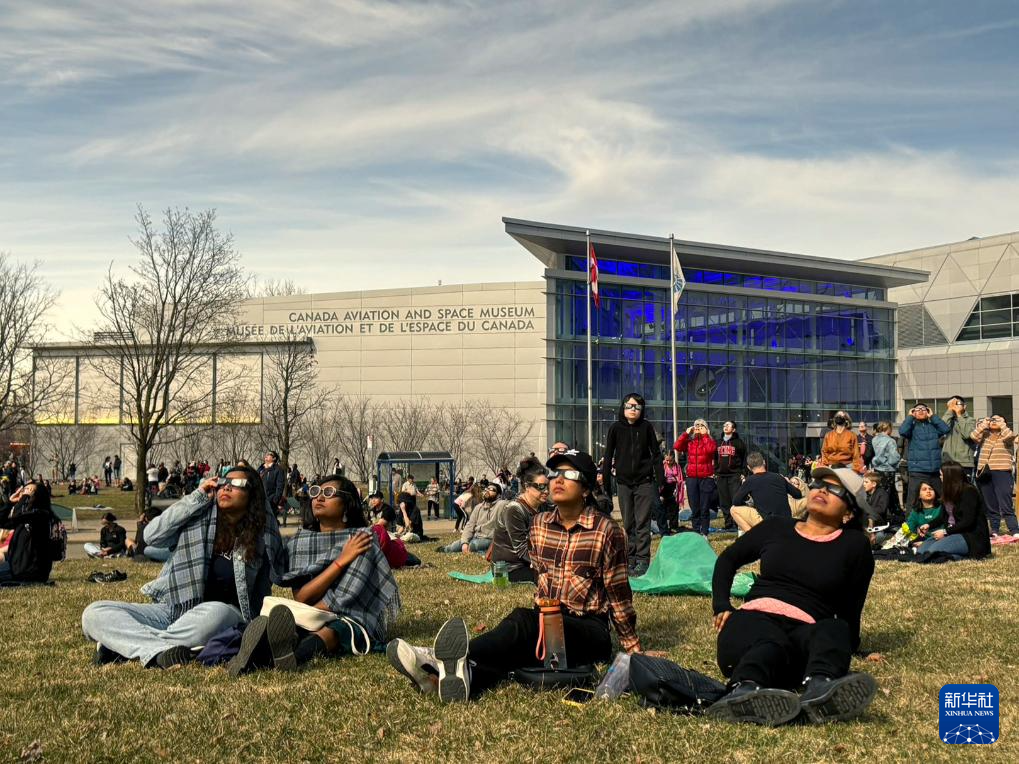 4月8日,人们在加拿大首都渥太华的航空航天博物馆附近观看日食。