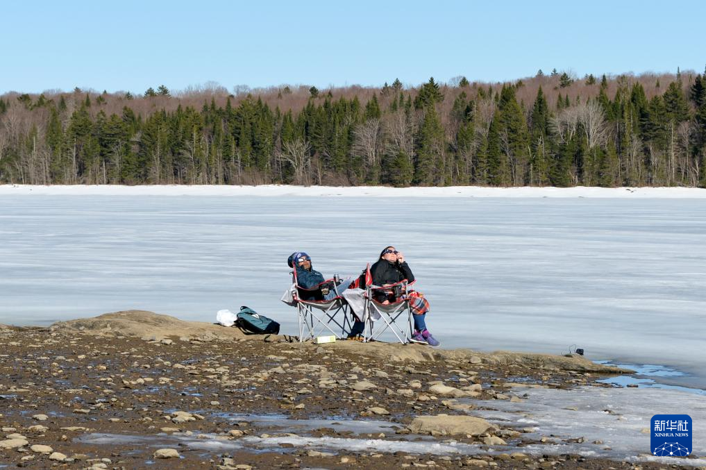 4月8日,人们在美国新罕布什尔州匹兹堡观看日食。