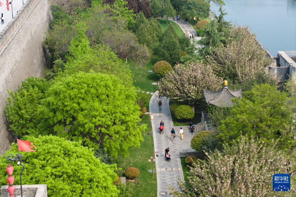 眼下,古城西安春意浓浓,美不胜收的景色吸引许多游客、市民游览休闲。
