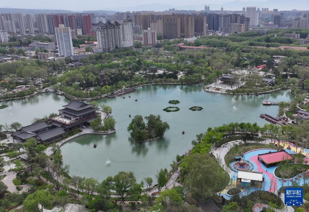 这是4月9日拍摄的西安市兴庆宫公园(无人机照片)。