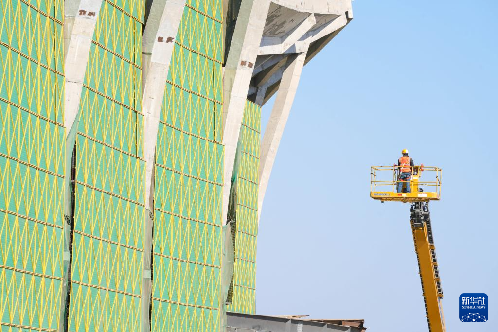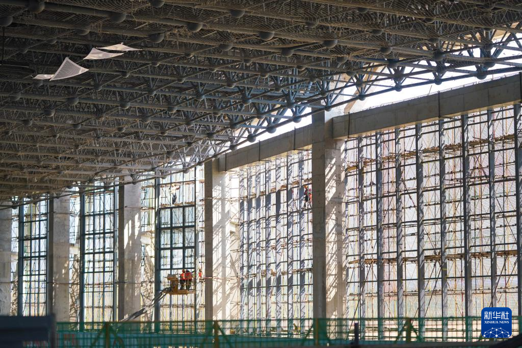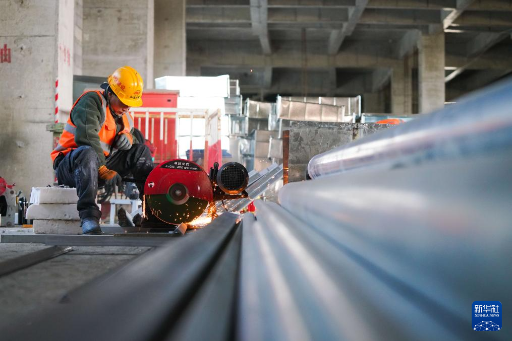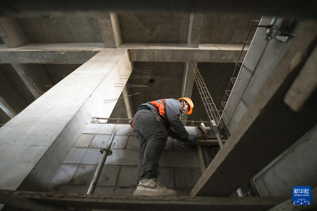 4月9日,工人在伊春西站施工现场作业。
