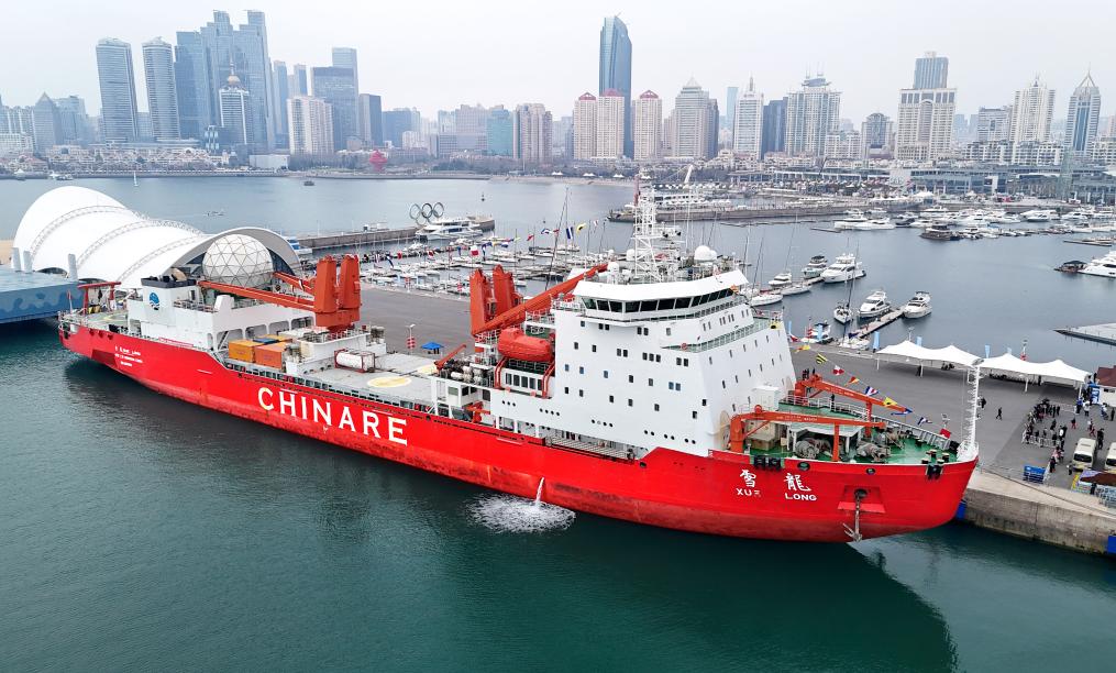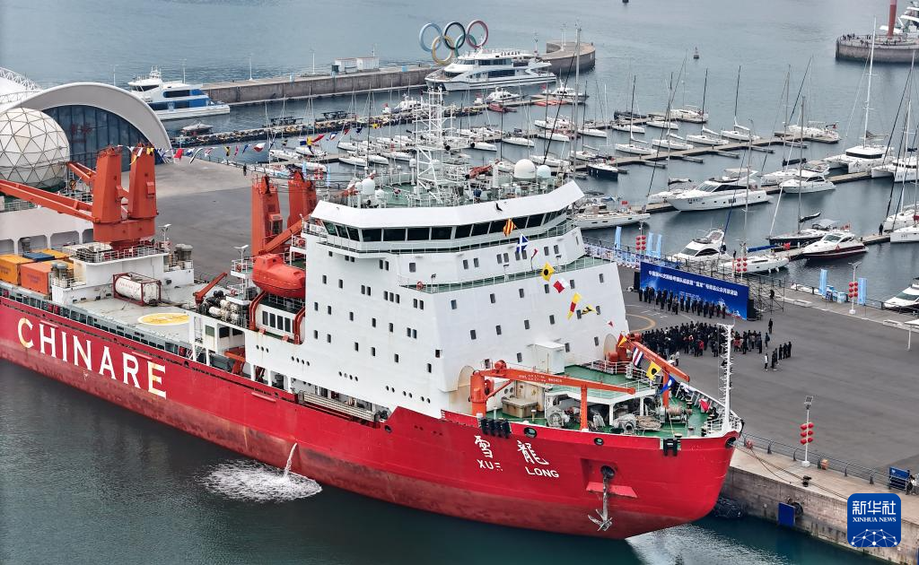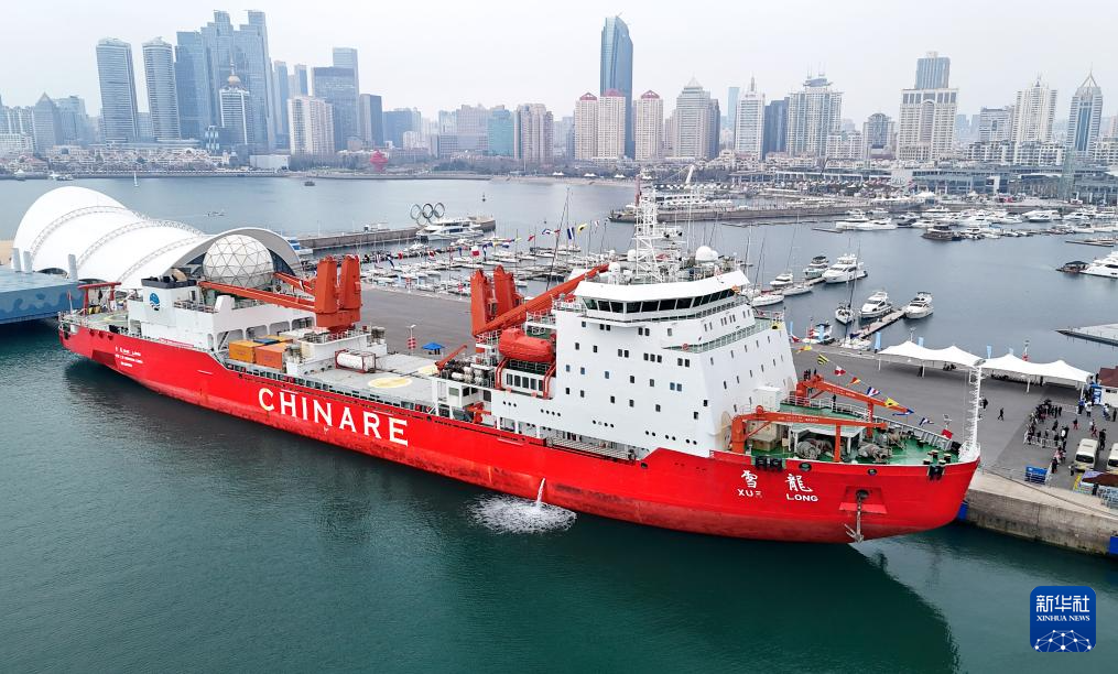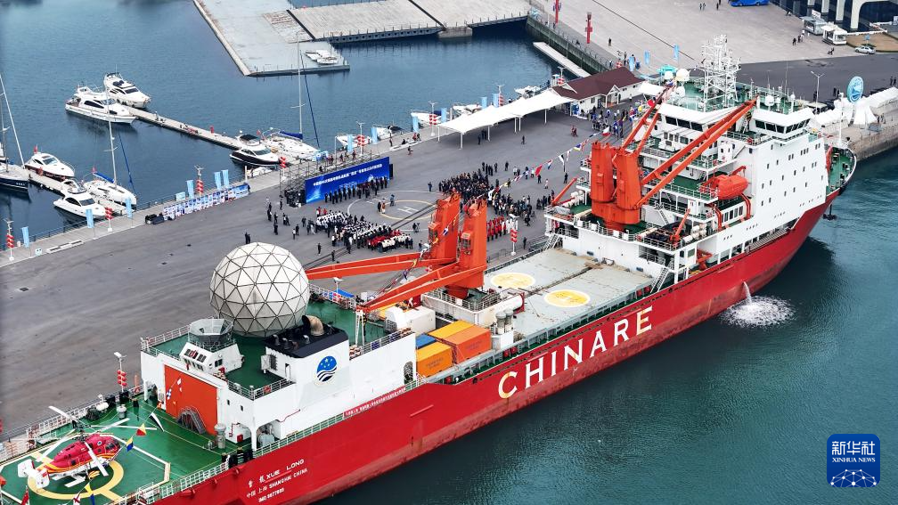 当日,“雪龙”号极地考察船停靠山东青岛。考察队于2023年11月1日从国内出发,历时5个多月,总航程8.1万余海里。自然资源部与山东省人民政府在青岛奥帆基地码头举行欢迎活动,之后,“雪龙”号将举办为期三天的开放日活动,供社会公众参观。