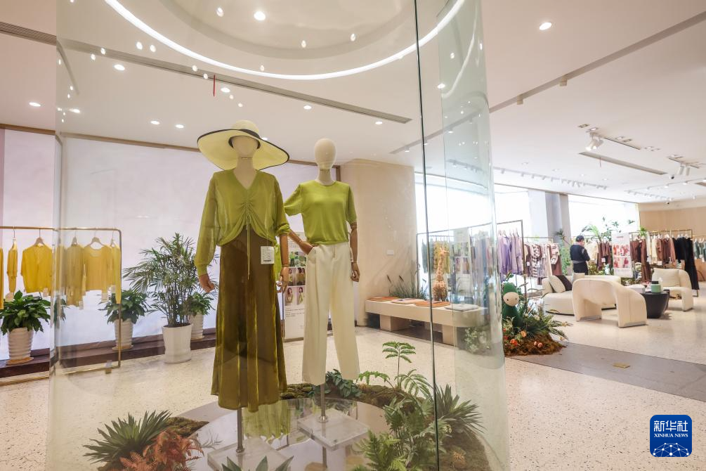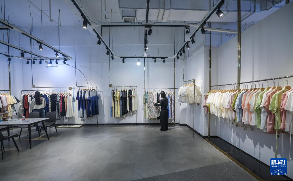 这是濮院镇的嘉兴貂帅服饰有限公司的展厅(4月9日摄)。