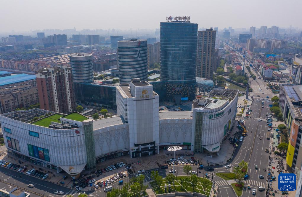 空中俯瞰濮院羊毛衫市场(4月9日摄,无人机照片)。