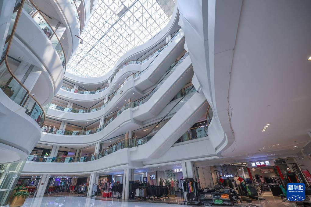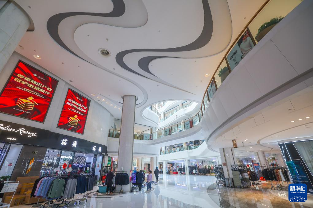 这是4月9日拍摄的濮院羊毛衫市场的时尚中心。