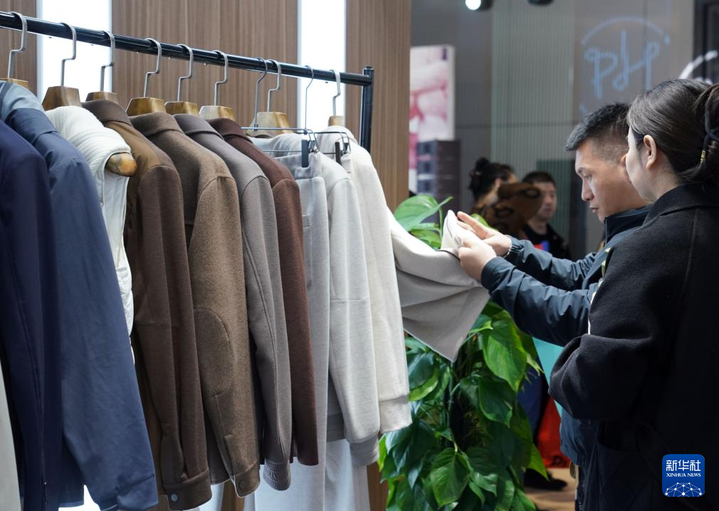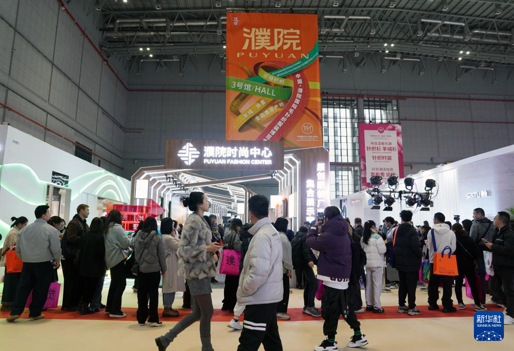 在2024中国国际针织(春夏)博览会上,客商在来自濮院的企业展台参观(3月6日摄)。