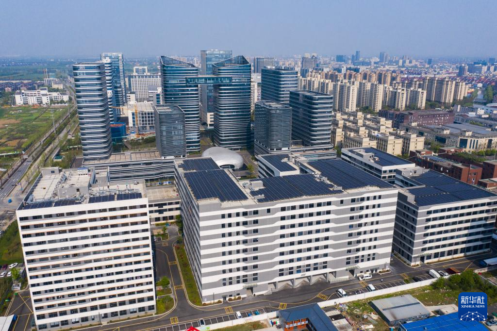 空中俯瞰濮院临空产业园(4月9日摄,无人机照片)。
